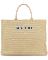 Go to BaltiniShopping bag realized in raffia characterized by contrasting embroidered logo a the front. A raffia flat handle. Unlined. Colour: metallic