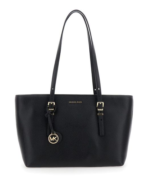 Women's Black 'Quinn' Medium Tote Bag With Removable Logo Charm And Embossed Logo Lettering On The Front