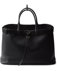 Prada Men's Black Buckles Strap Leather Tote Bag