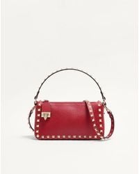 Valentino Garavani Women's Red Rockstud Grainy Calfskin Pouch Rosso