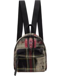 Go to SSENSEStructured twill backpack in red and black. · Check pattern and piping throughout · Adjustable padded shoulder straps · Safety pin and logo hardware at face · Carry handle at side · Two-way