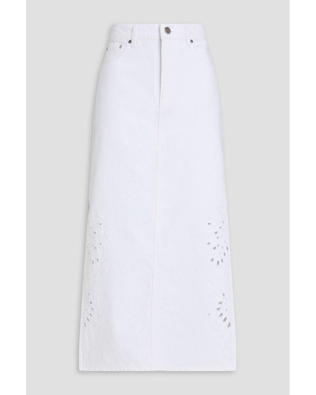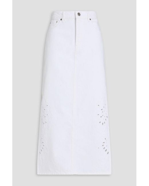 Women's White Violet Denim Midi Skirt