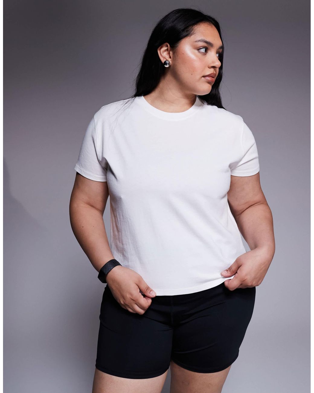 Women's White Curve Icon Boxy Fit Cotton T-shirt With Quick Dry Finish