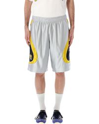 Go to BalardiFootball-style shorts by adidas Originals created in collaboration with Brain Dead in black, yellow and silver white tricot material, featuring an elasticated waist, two side zip pockets, a zip pocket on the back,
