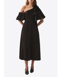 Go to Liberty LondonThe Wattle Off-Shoulder Midi Dress in Taupe Grey by Aje is an off-the-shoulder, midi dress featuring tonal waist piping with gathers, a cascading skirt, and blouson sleeves. Full, unlined skirt. Side seam pockets.