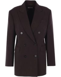 Go to FARFETCHBlack satin lapel double-breasted closure long sleeves buttoned cuffs Size: 40. Gender: Female. Material:Virgin Wool/Polyester/Elastane/Acetate/Polyester. Colour: black