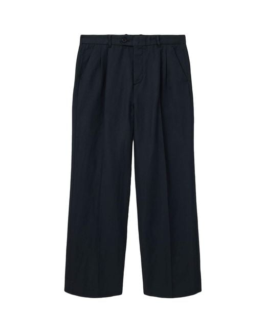 Men's Blue Linen-Organic Cotton Roland Straight Pants