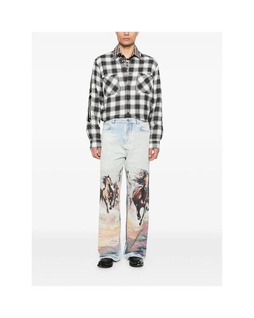 Light blue graphic print five pockets belt loops logo patch Colour: Blue, Brown Composition: Outer Composition Cotton: 100.0%, Lining Composition Cotton: 35.0%, Lining Composition Polyester: 65.0% Country Of Manufacture: Italy MPN: AMBMJE1009CLOBL