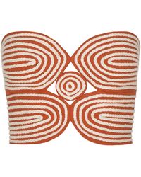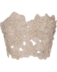 Go to Moda OperandiResort '25. Slim fit, cropped silhouette, bustier bodice, strapless, sculputal spiral appliqué with embroidered details. Lined. Composition: 100% Linen. Concealed zip fastening along back. Dry clean. Made in Colombia. Colour: white