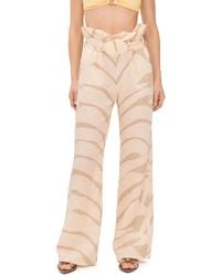 Go to BaltiniPants by Andres Otalora Flared cut High waist Made of linen Tropical palm tree print motif Hook-and-eye and zip fastening Two darts Front pockets Two back pockets. Made in Colombia. Leg length: 110