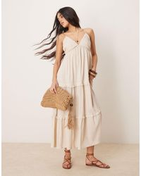 Dresses by ASOS DESIGN Tiered design V-neck Tie straps Tie-back fastening Regular fit Colour: brown