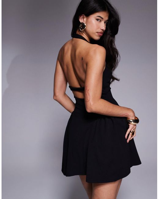 - Halter Neck Corset Detail Mini Dress With Godets