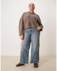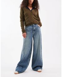 Jeans by ASOS DESIGN Wide leg High rise Belt loops Five pockets Cinch to reverse. Cotton. Colour: blue