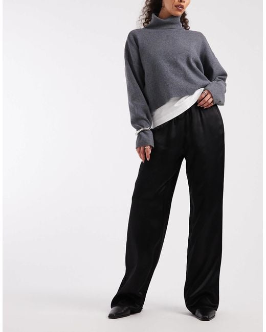 - Satin Wide Leg Pull On Trouser