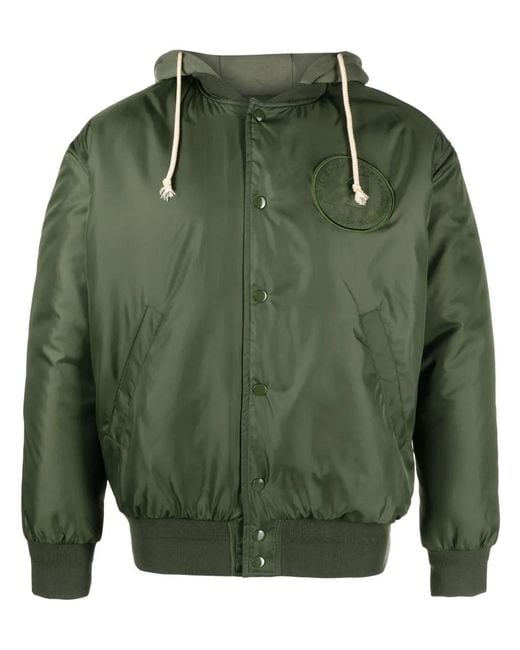 Logo-patch bomber jacket from Autry featuring olive green, logo patch at the chest, embroidered logo to the rear, drawstring hood, ribbed band collar, front press-stud fastening, long sleeves, ribbed cuffs and hem, two side welt pockets and straight hem. Material: NYLON 100% -. Colour: green