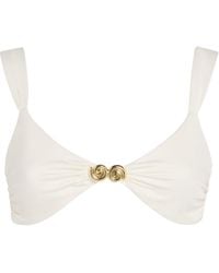 Go to FARFETCHChocolate brown halterneck tie fastening rear tie fastening Be mindful to try on swimwear over your own garments. Size: L. Gender: Female. Material:Elastane/Recycled Polyamide/Lurex. Colour: brown
