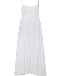 Go to FARFETCHPolka dot spaghetti straps square neck gathered detail midi length Colour: natural