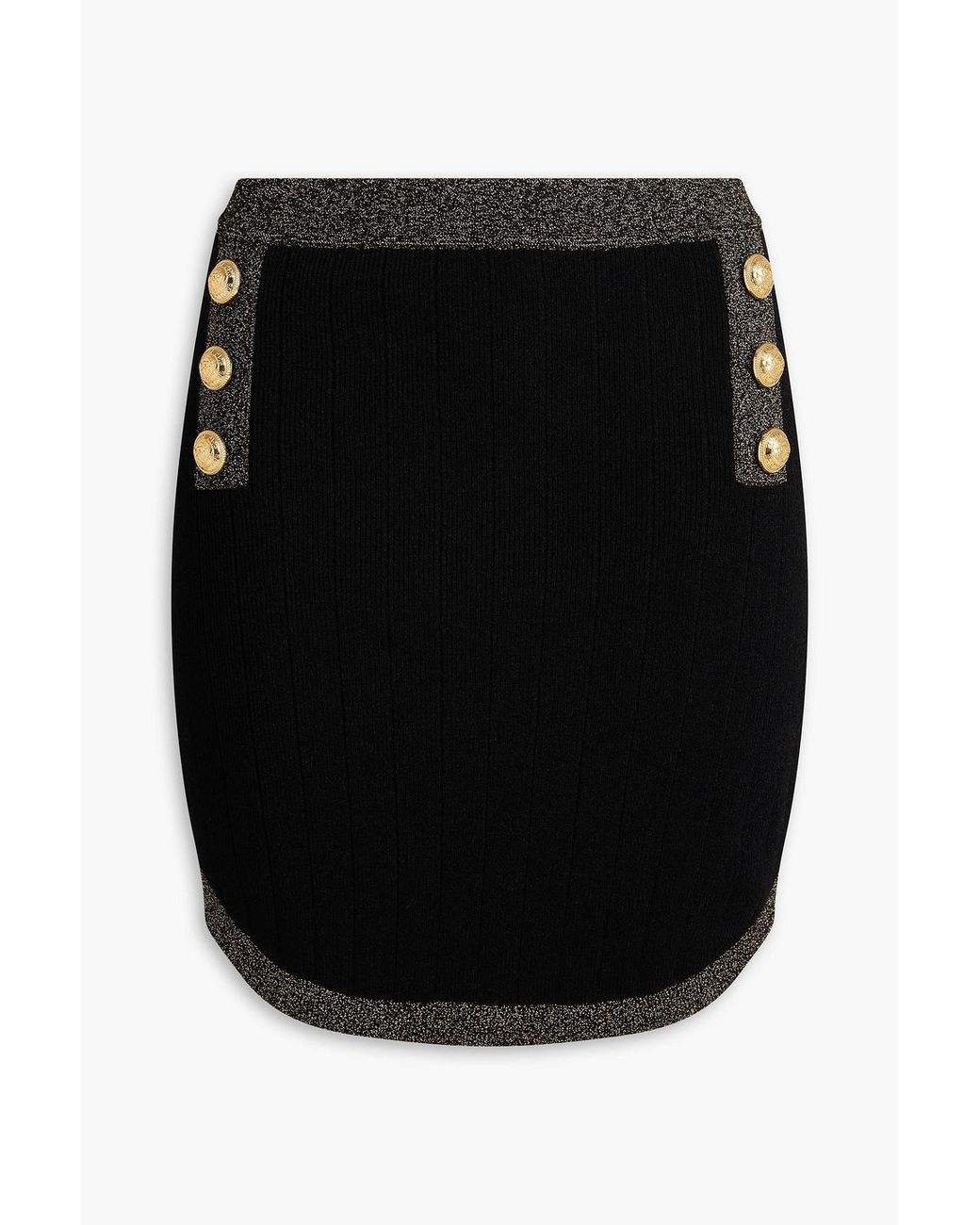 - Embellished Metallic Ribbed-Knit Mini Skirt