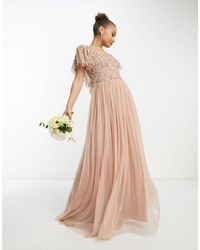 - Tall Bridesmaid Embellished Maxi Dress With Flutter Sleeve