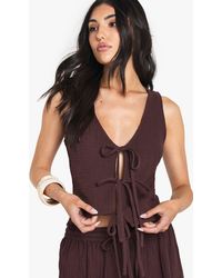 Boohoo Women's Green Cheesecloth Tie Front Beach Top