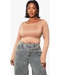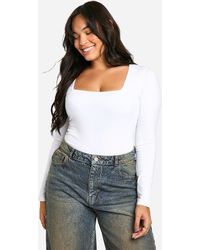 Go to BoohooWomens Plus Square Neck Long Sleeve Corset Top - Black - 24 - Flattering bandeau neckline with corset-inspired design Long sleeves with gentle gathering for added dimension Soft jersey fabric offering comfortable stretch