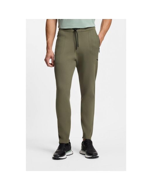 Men's Green Regular-Fit Tracksuit Bottoms With Jacquard Stripes