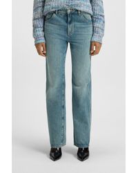 Go to FARFETCHBlue concealed front fastening two side slit pockets wide leg straight leg cropped Size: 32. Gender: Female. Material:Silk/Viscose. Colour: white