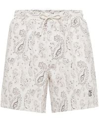 Brunello Cucinelli Men's Green Printed Drawstring Swim Shorts