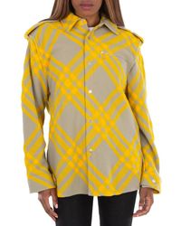 Go to Wanan LuxuryBurberry's wool-blend Check pattern shirt is the ideal garment for the woman who seeks timeless elegance and comfort. Made from a lightweight wool blend, this long-sleeved shirt features a regular fit and a