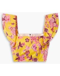Go to FARFETCHBrown/multicolour floral print fruit print peplum hem strapless neckline cotton-linen blend Size: XXS. Gender: Female. Material:Cotton/Linen/Flax/Cotton. Colour: green