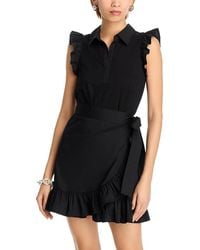 Go to ShopbopFabric: Lightweight, low-stretch poplin. Faux wrap silhouette with tie at side. Jersey bodice. Ruffle hem. Mini length. Polo neckline. Sleeveless. Pullover design, no closure. Shell: 68% cotton/28% nylon/4% spandex. Trim: 95% cotton/5% spandex.
