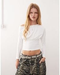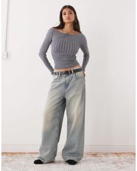 Tops by Collusion Stripe design Off-shoulder style Long sleeves Relaxed fit. Colour: blue
