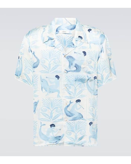 Men's Blue Printed Bowling Shirt