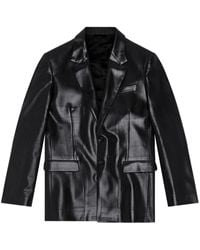 Go to SSENSEFoil-coated stretch polyester- and virgin wool-blend barathea coat. Pinstripes throughout. · Notched lapel · Button closure · Welt pocket and flap pockets · Padded shoulders · Central vent at back hem · Welt
