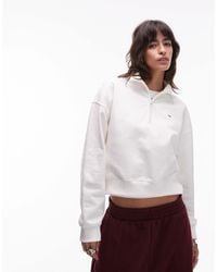 Go to Rue La LaColor/pattern: ivory/black Approximately 25in from shoulder to hem Design details: striped sleeves 1/4-zip closure 75% rayon, 25% nylon Hand wash Imported Colour: white
