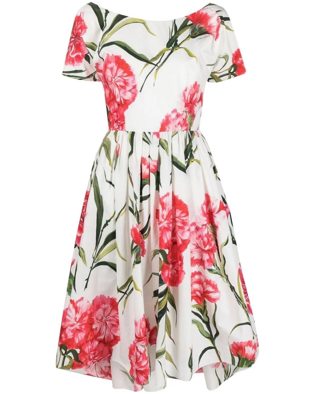 - Longuette Dress With Carnation Print