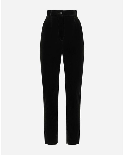 Velvet cigarette pants: Black High-waisted Front slant pockets Welt back pockets Inner leg: 73 cm Hem: 15 cm with invisible zipper Zipper and button fastening The model is 175 cm tall and wears a size IT 40 Made in Italy Colour: black