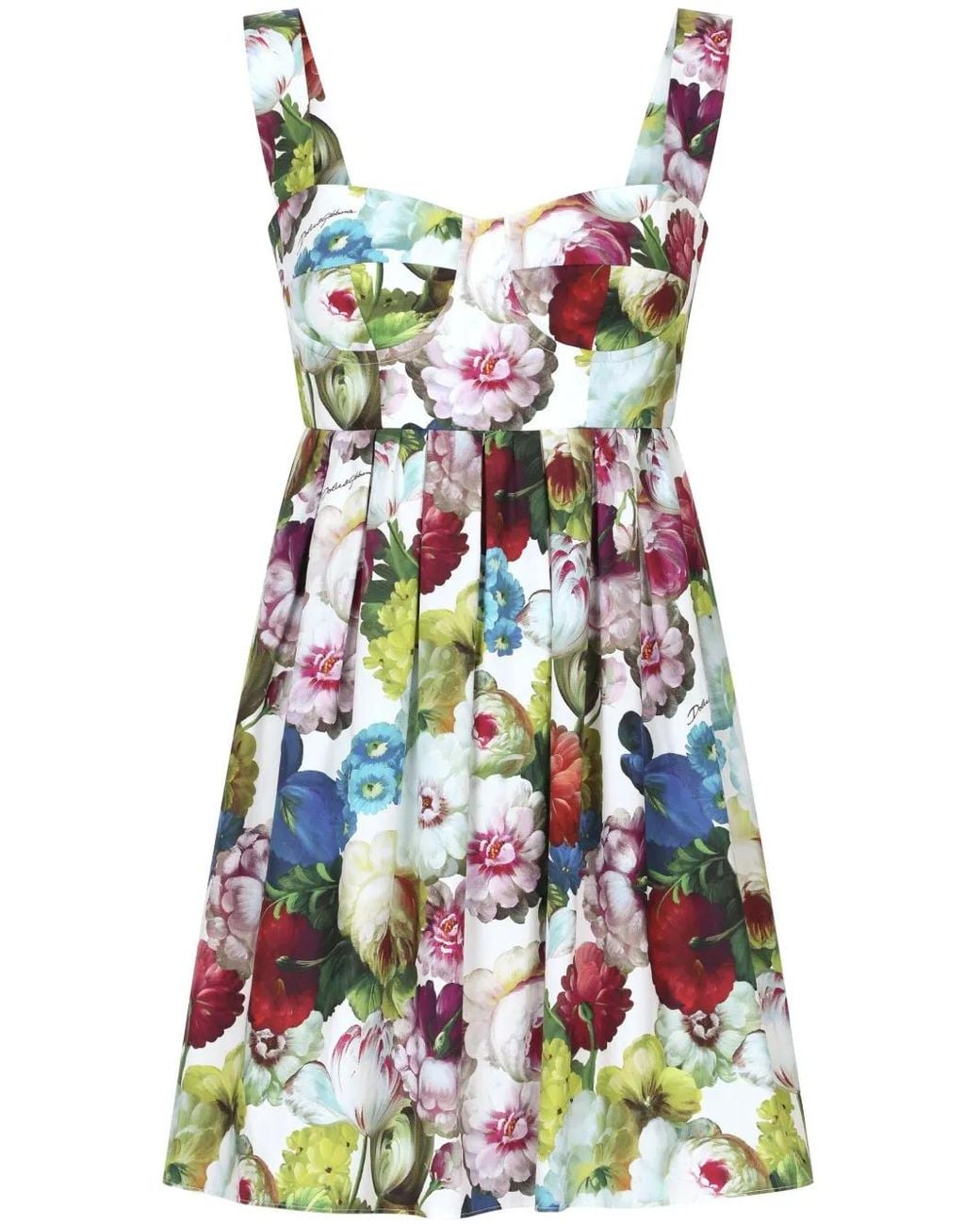 Women's White Short Cotton Corset Dress With Nocturnal Flower
