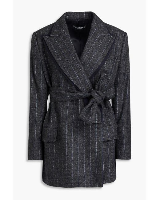 - Wrap-effect Pinstriped Felt Jacket