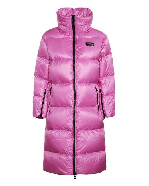 Women's Pink Belted Hooded Long Down Jacket