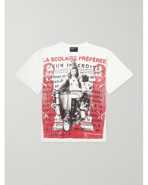 Men's White La Scolaire Préféree Printed Distressed Cotton-Jersey T-Shirt