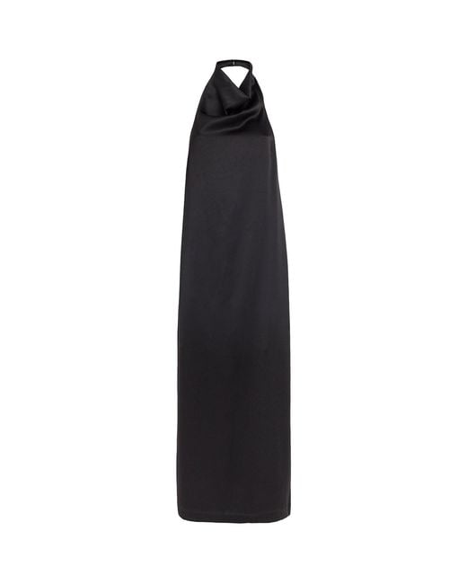 Women's Black Satin Halterneck Cartia Maxi Dress