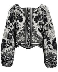 FARM Rio Women's Blue Black And White Floral Bandeau Top