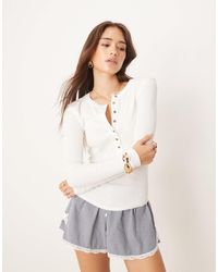 Tops by Free People Plain design Round neck Button placket Long sleeves Regular fit. Colour: natural