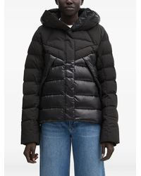 Go to FARFETCHNavy blue and white houndstooth pattern hooded neckline belt fastening zip fastening Size: XS. Gender: Female. Material:Recycled Polyamide/Polyamide/Duck Down/Duck Feathers. Colour: blue