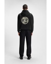 HUGO Men's Black Relaxed-fit Hoodie In French Terry With Dog Artwork