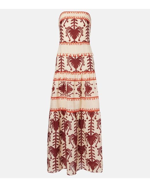 Women's Red Printed Linen Maxi Dress