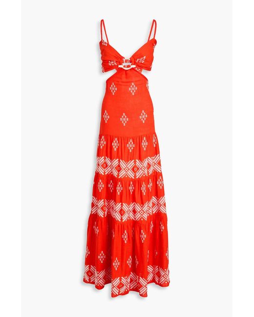 - Convertible Tiered Embroidered Slub Woven Maxi Dress