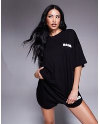 Tops by Kaiia V-neck Drop shoulders Half sleeves Graphic and text print on front and back Oversized fit. Colour: blue