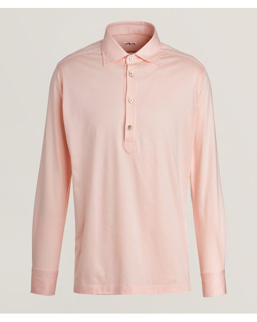 Men's Pink Long Placket Cotton Polo